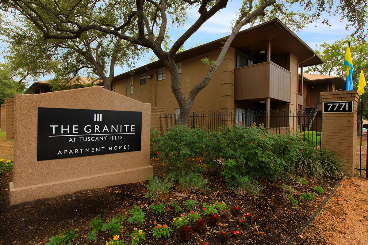 Come home to the granite at tuscany hills apartment homes a beautiful community hidden among a drive of well maintained residences in northwest san antonio texas.